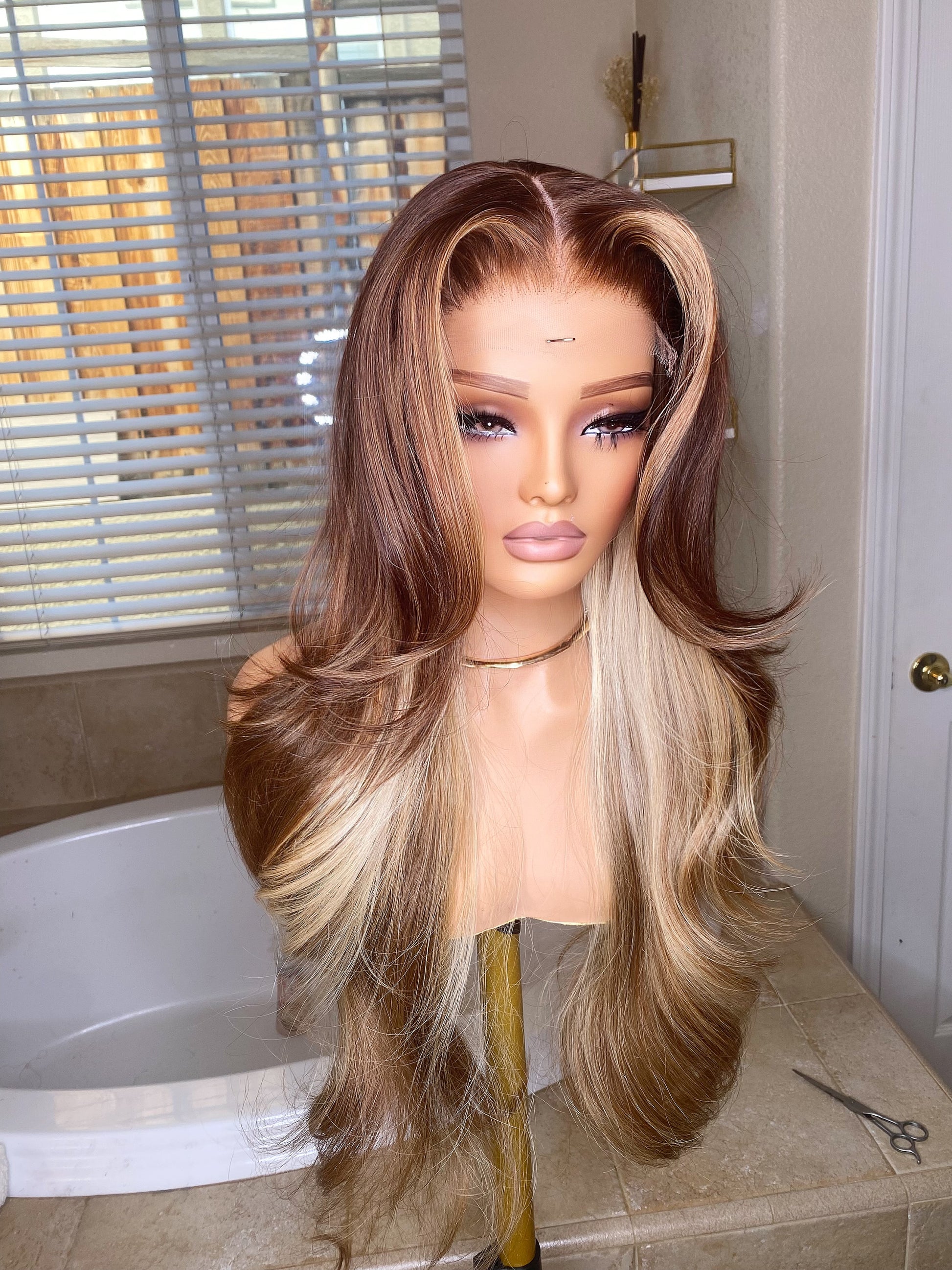Experience beauty like never before with the Zaira Lace Wig! In stunning light auburn brown adorned with ash blonde front cascading highlights, this glueless wig effortlessly transforms your look. Feel confident and radiant, making every day your best hair day! Unlock the stunning potential of your style!